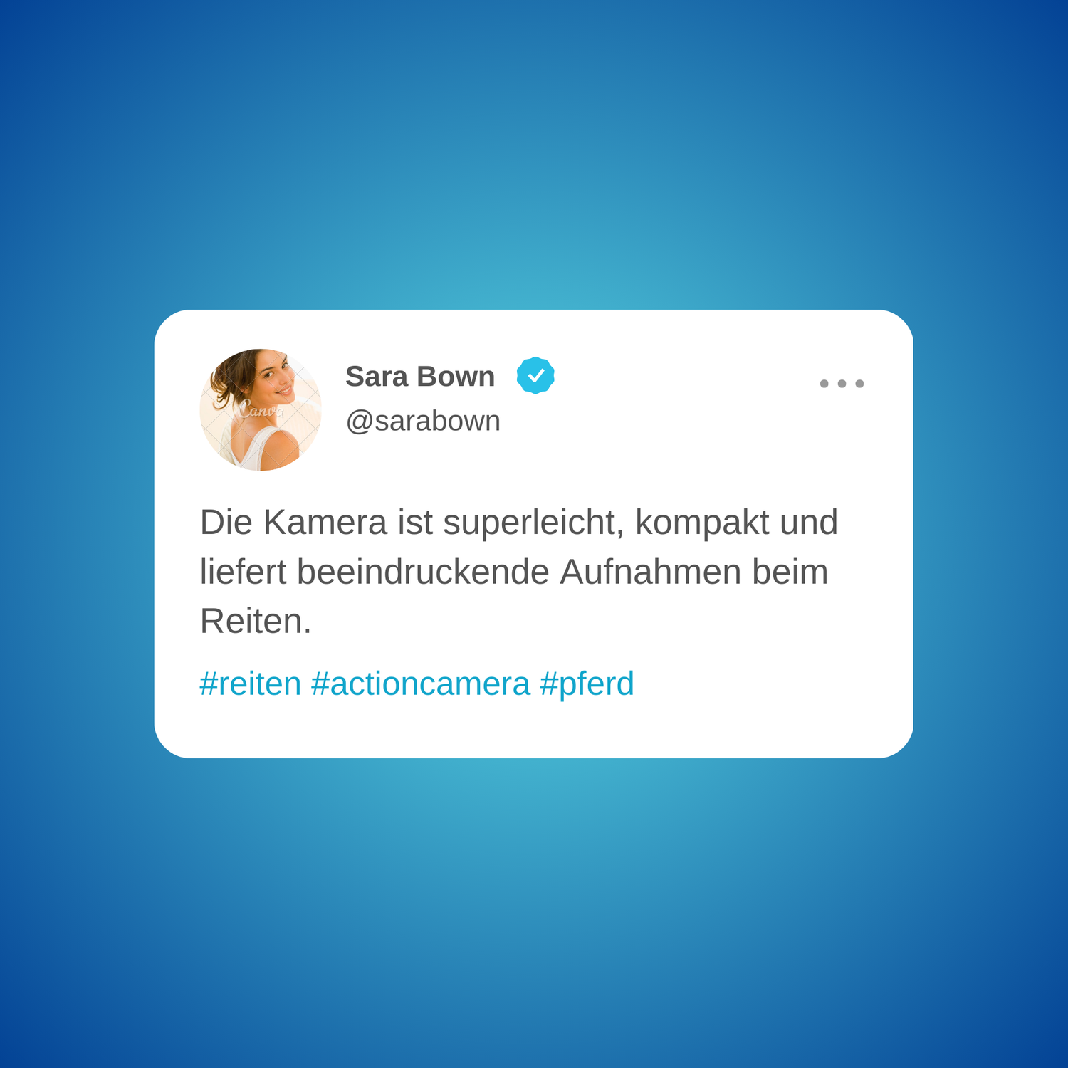 Die GoMotion™ Kamera nimmt in HD-Qualität auf, sodass du gestochen scharfe Videos von deinen Ausritten und Pferdeabenteuern erstellen kannst.